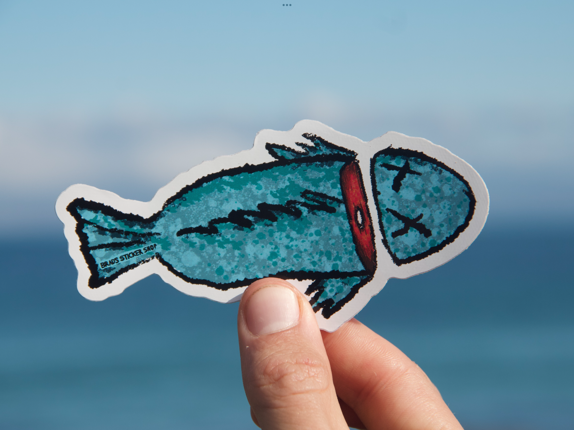 - Blue Salmon Sticker (6.2cm by 12.5 cm)
